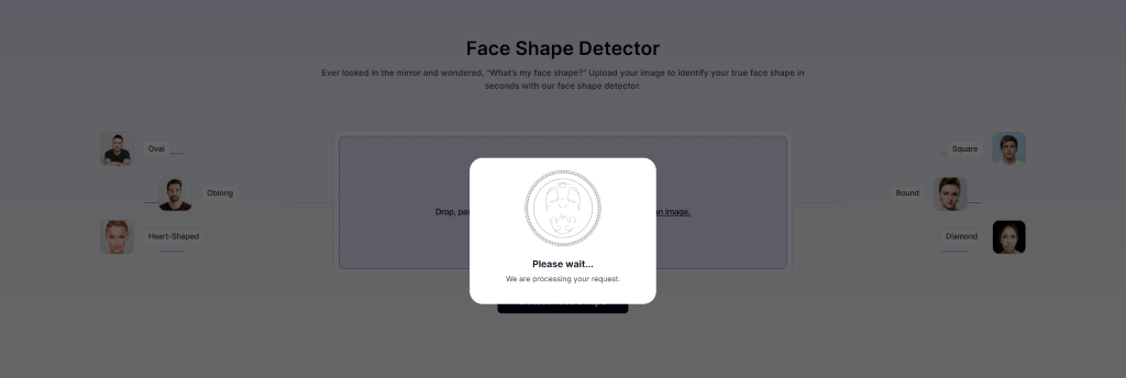 Once the image is uploaded successfully, the AI automatically starts face shape analysis. During this phase, the system calculates facial dimensions and analyzes proportional relationships to determine the exact face shape.